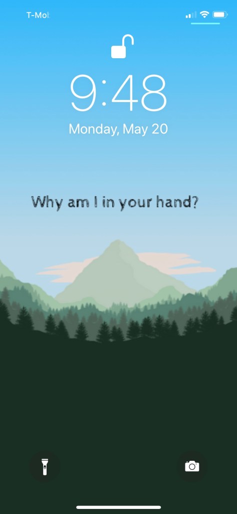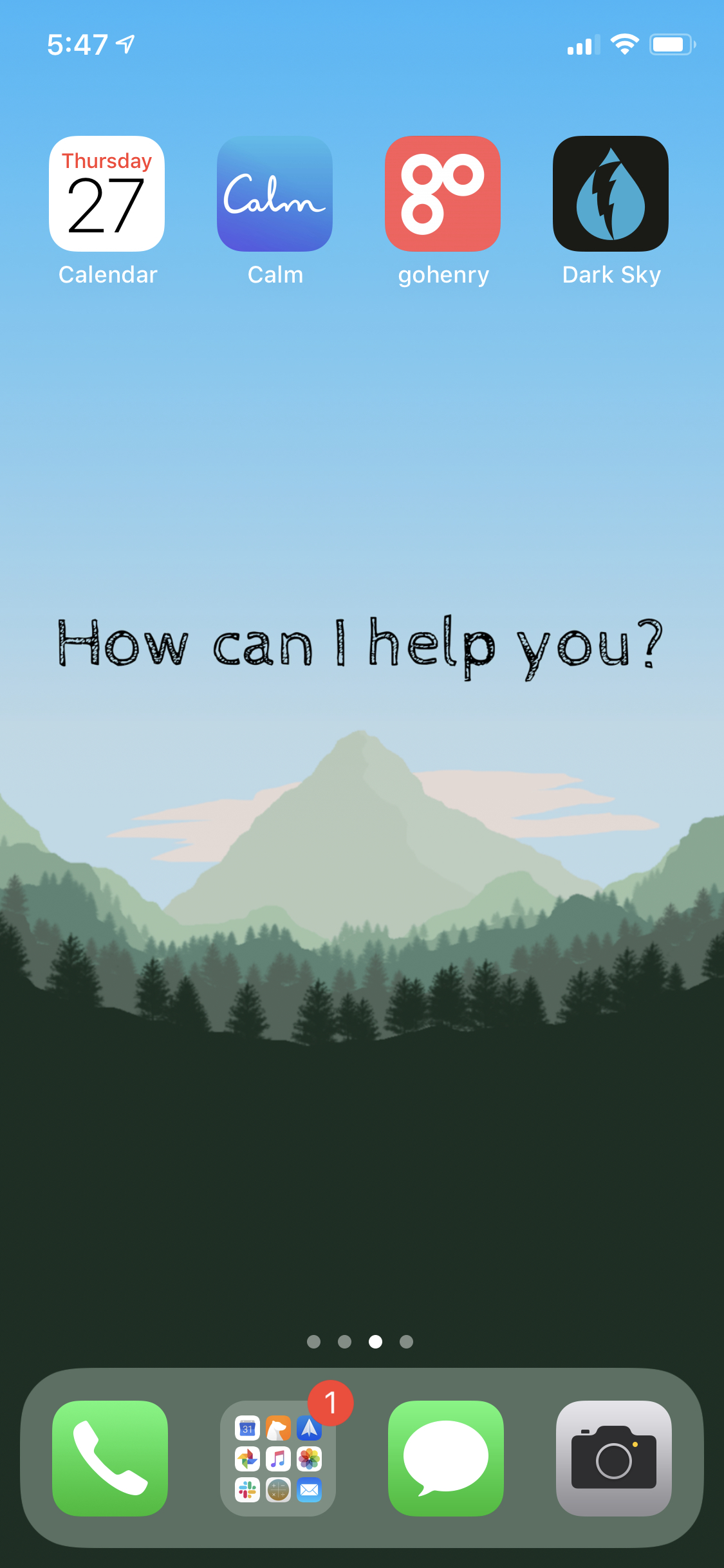 I’ve also modified my lock screen and my home screen to remind me that my phone is a tool, not a time-suck. The lock screen literally asks me “Why am I in your hand?” I usually have a good reason; sometimes I don’t… Then the home screen reinforces the theme by asking “How can I help you?” Because that is what the smartphone is for, when you get down to it. I’ve always held to the idea that if your technology is not making your life better then it isn’t doing it’s job. And losing hours upon hours every day to social media browsing, news reading, and game playing is not making life better, at least in my opinion. Side note: I have zero mobile games on my smartphone.